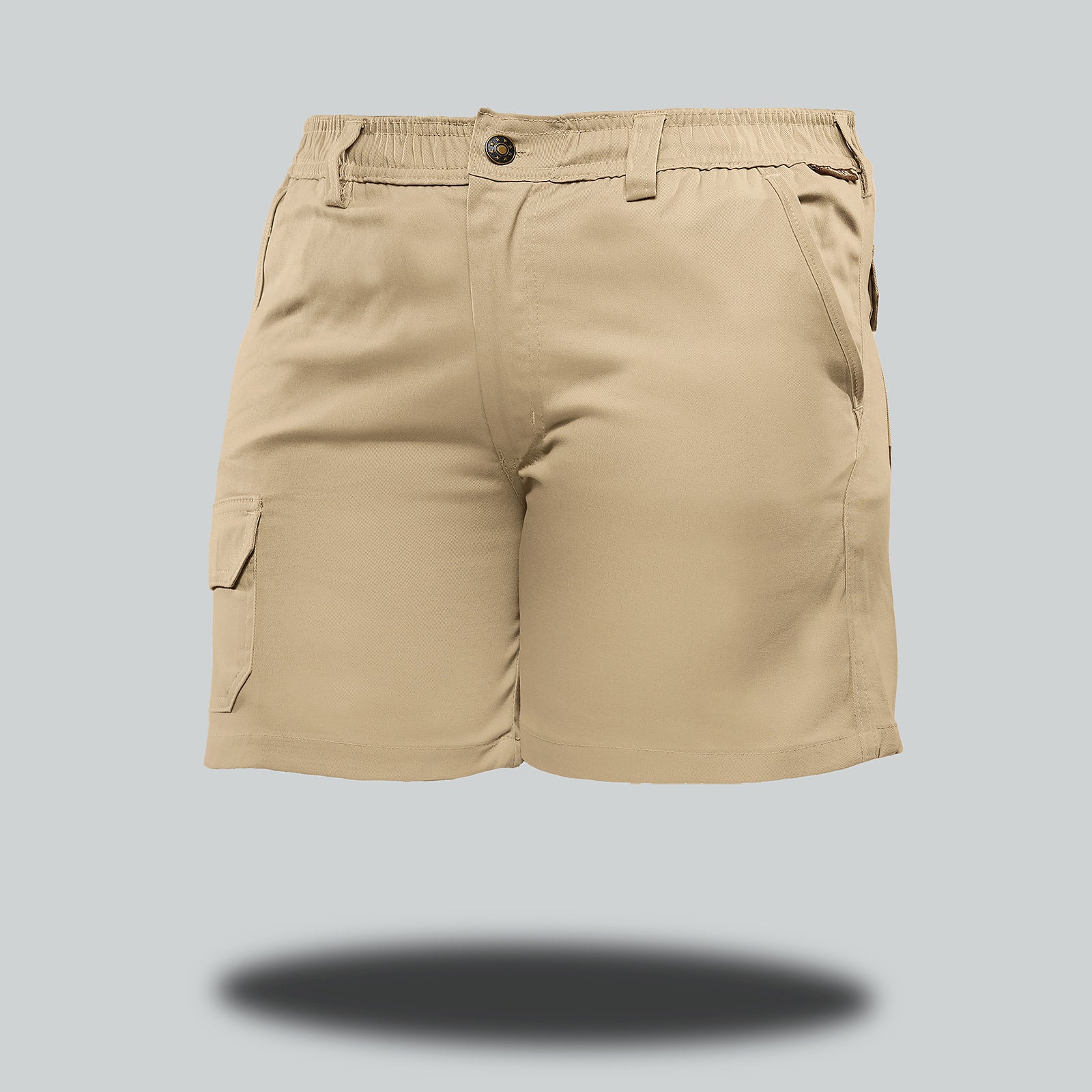 Shorter length flat front cargo shorts featuring half-elasticated waistband with belt loops for all day comfort.