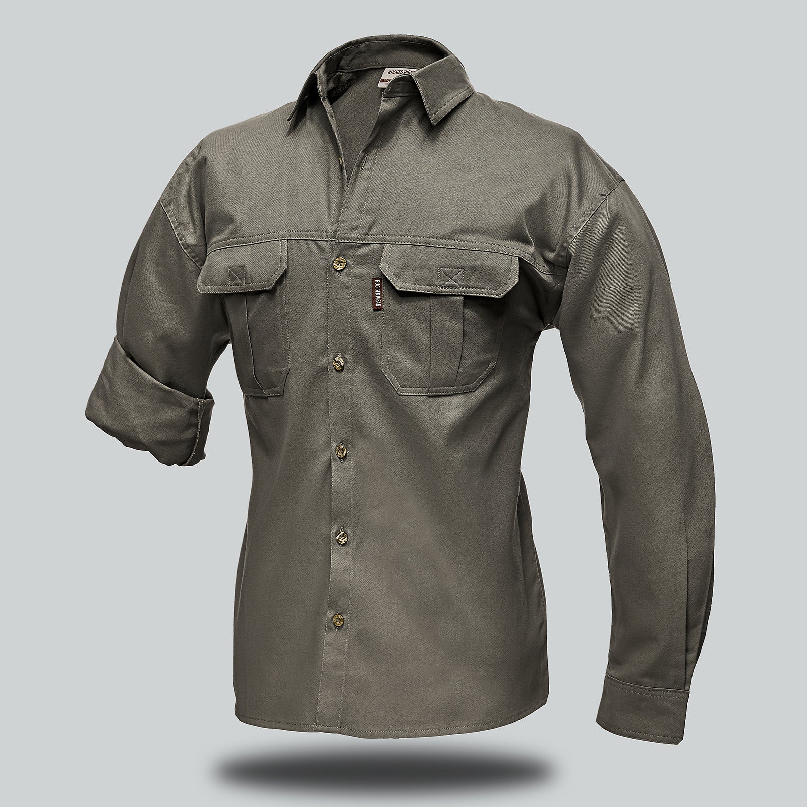 A heavier-weight comfortable long sleeve shirt made from 100% cotton with double velcro pockets.