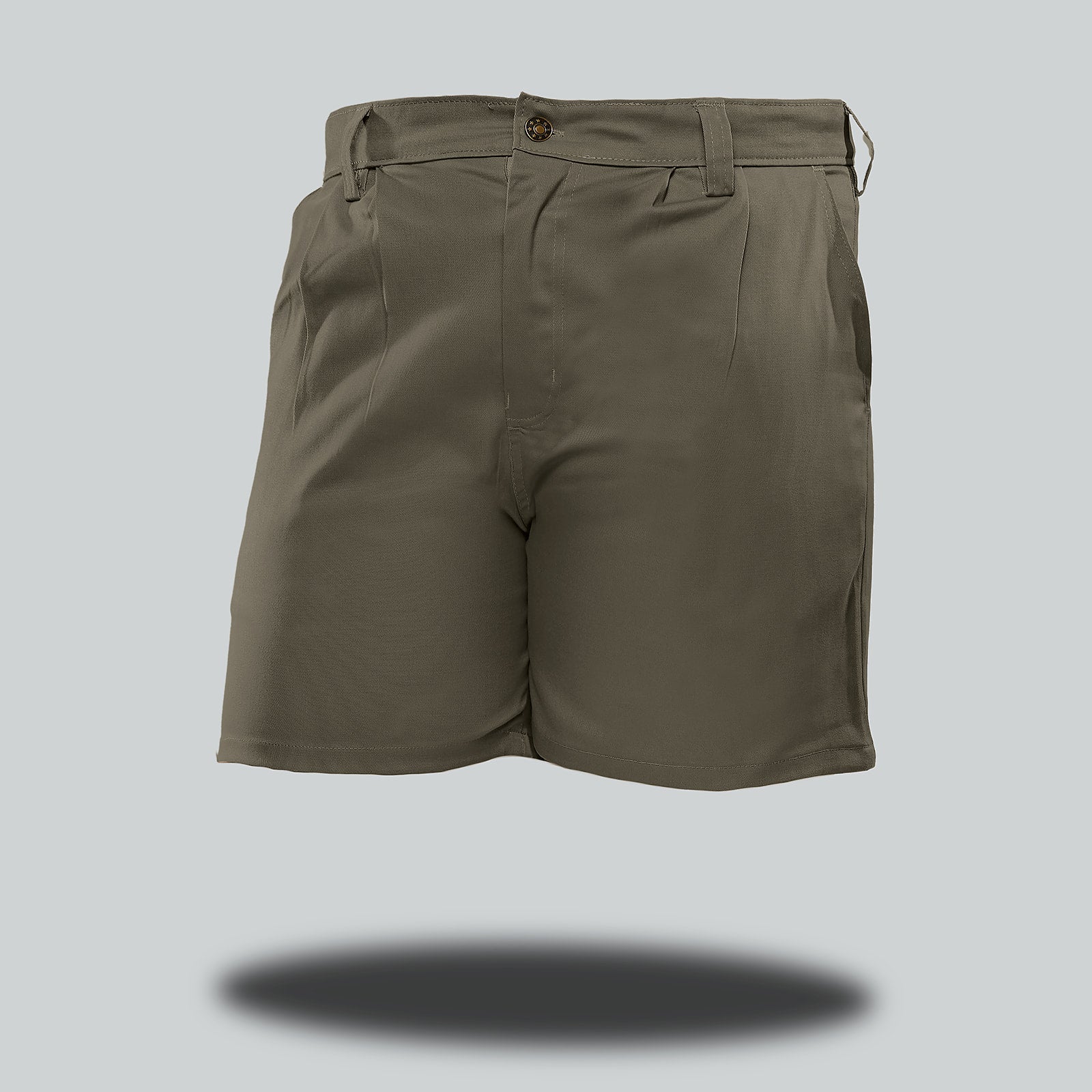 A shorter length pleated front shorts with double back pockets, made with stretch cotton.